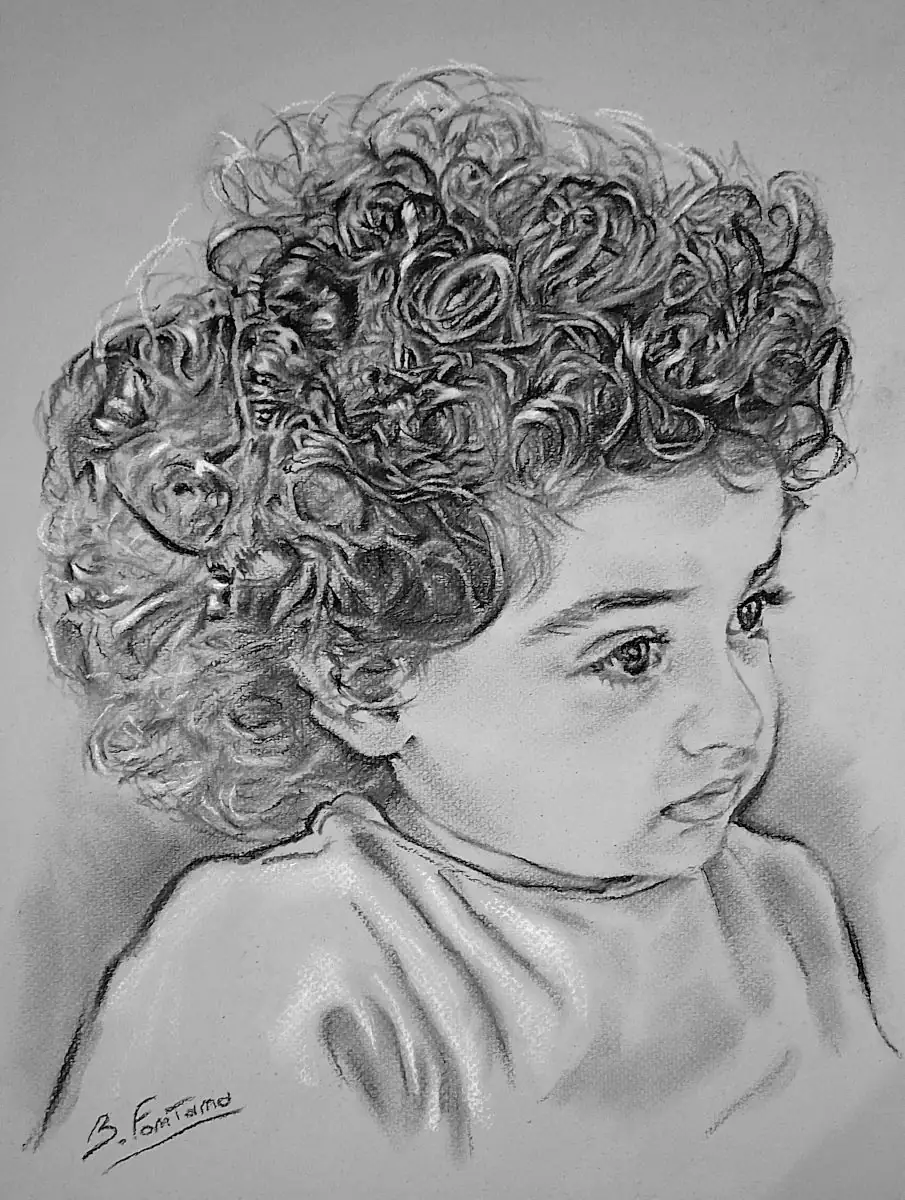 Ritratto a carboncino e pastello, eseguito da foto, 35x50