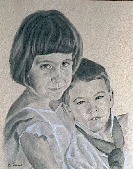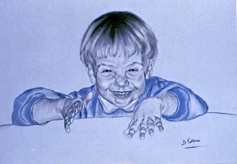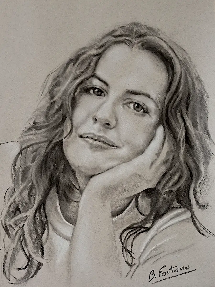 Disegno a carboncino e gessetto bianco, ritratto da foto, eseguito su commissione, 30x40