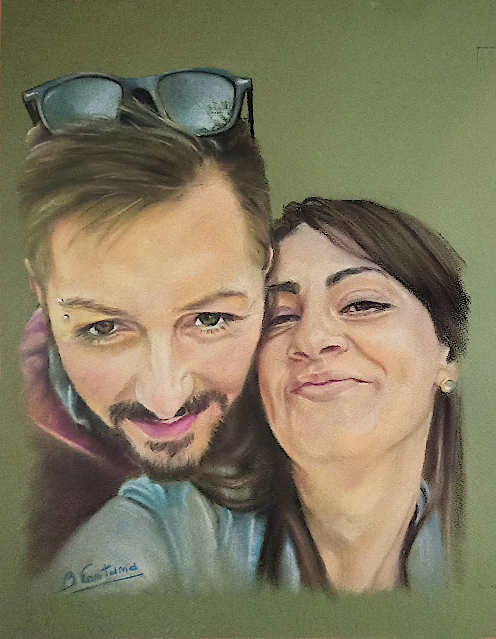 Doppio ritratto a pastello, ritratto da foto, 40x50cm