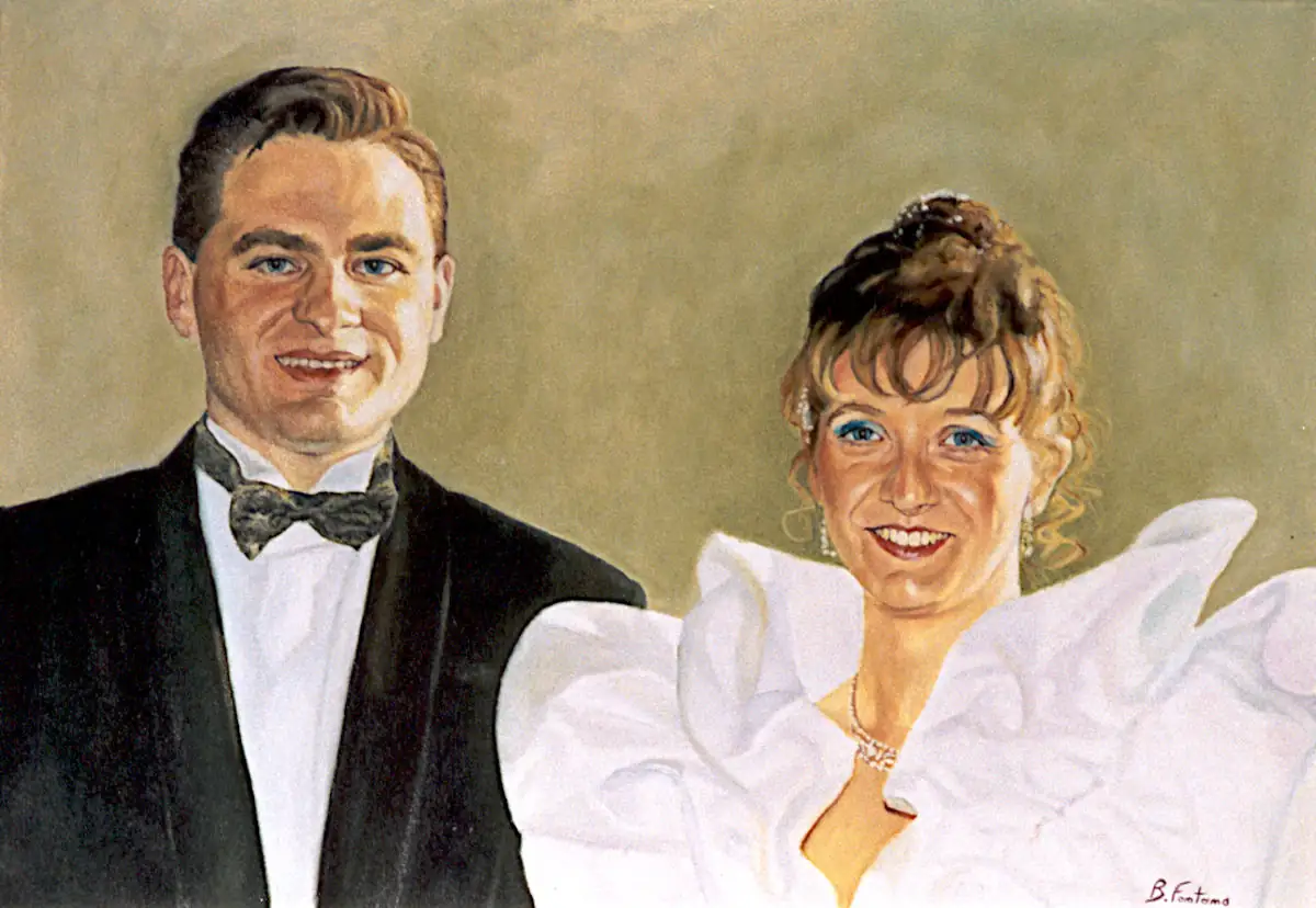 Dipinto con tecnica ad olio, da foto in bianco e nero, su commissione, 40x50cm