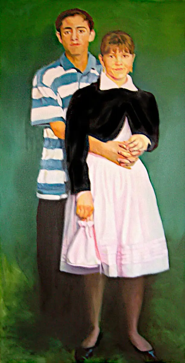 Quadro a figura intera dipinto ad olio su tela e ritratto da foto, su commissione, 60x120cm