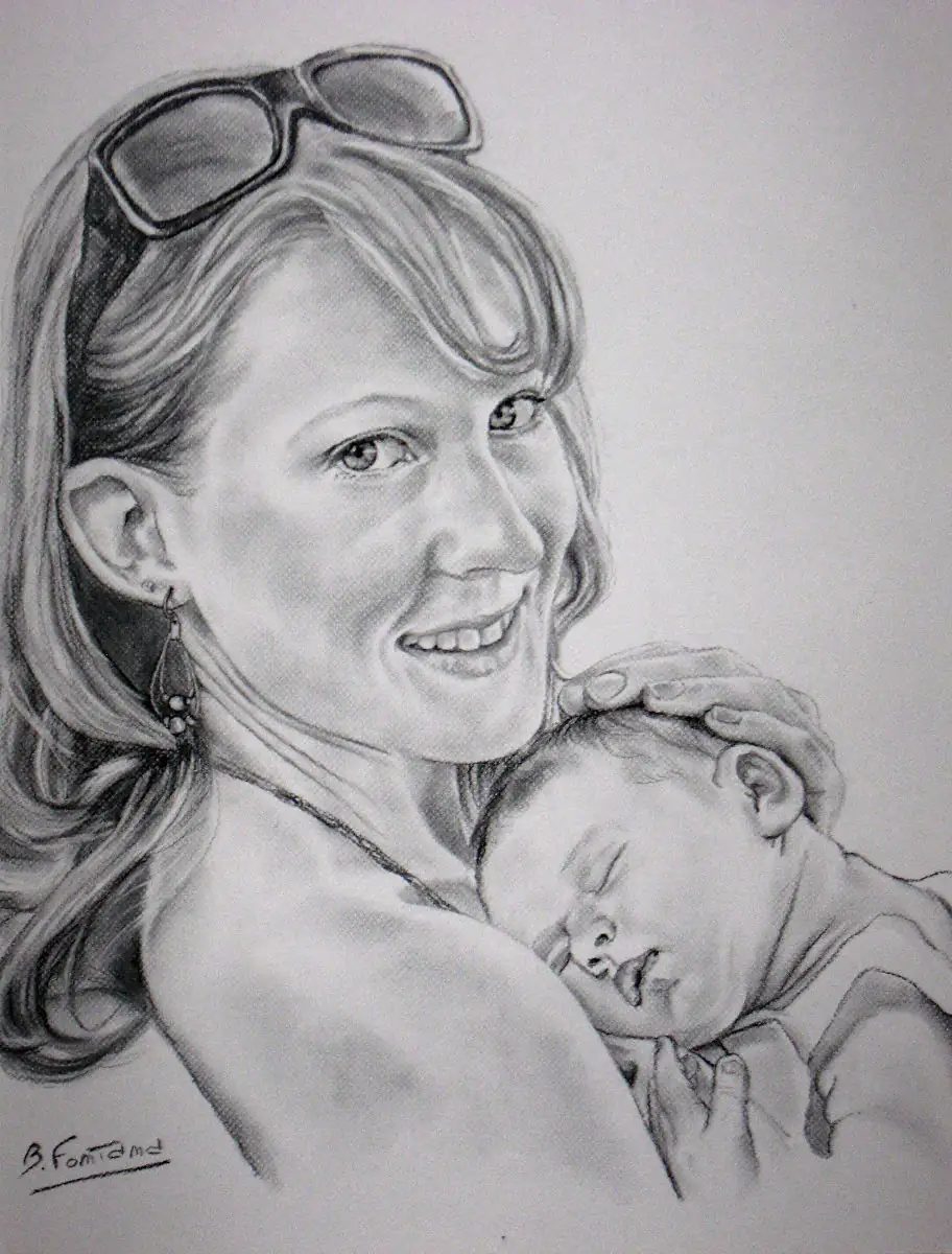 Ritratto a carboncino, eseguito da foto, su commissione, 50x70cm